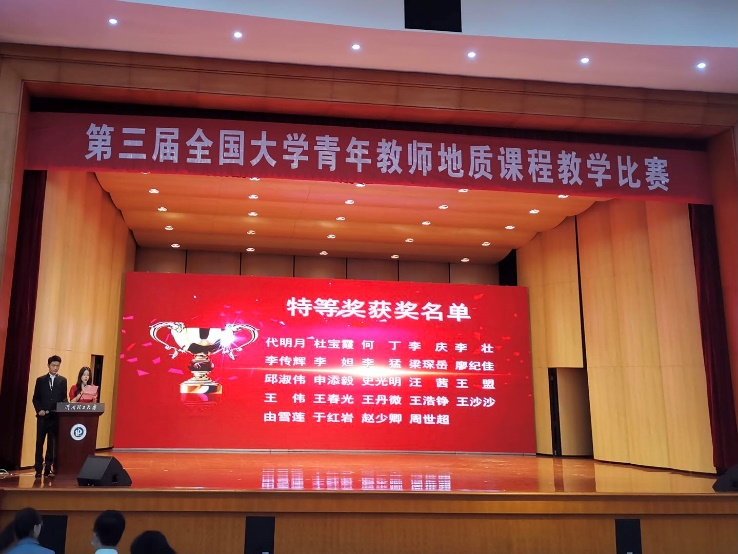 2021年5月15日至16日,由中国地质学会主办,中国地质学会地质教育研究分会、河南理工大学承办的第三届全国大学青年教师地质课程教学比赛在河南理工大学举行。必赢官网参赛教师梁琛岳副教授和王春光副教授表现优异,荣获特等奖。院长单玄龙教授应邀出席大赛闭幕式,为获奖选手颁奖。必赢bwin线路检测中心荣获“优秀组织奖”。