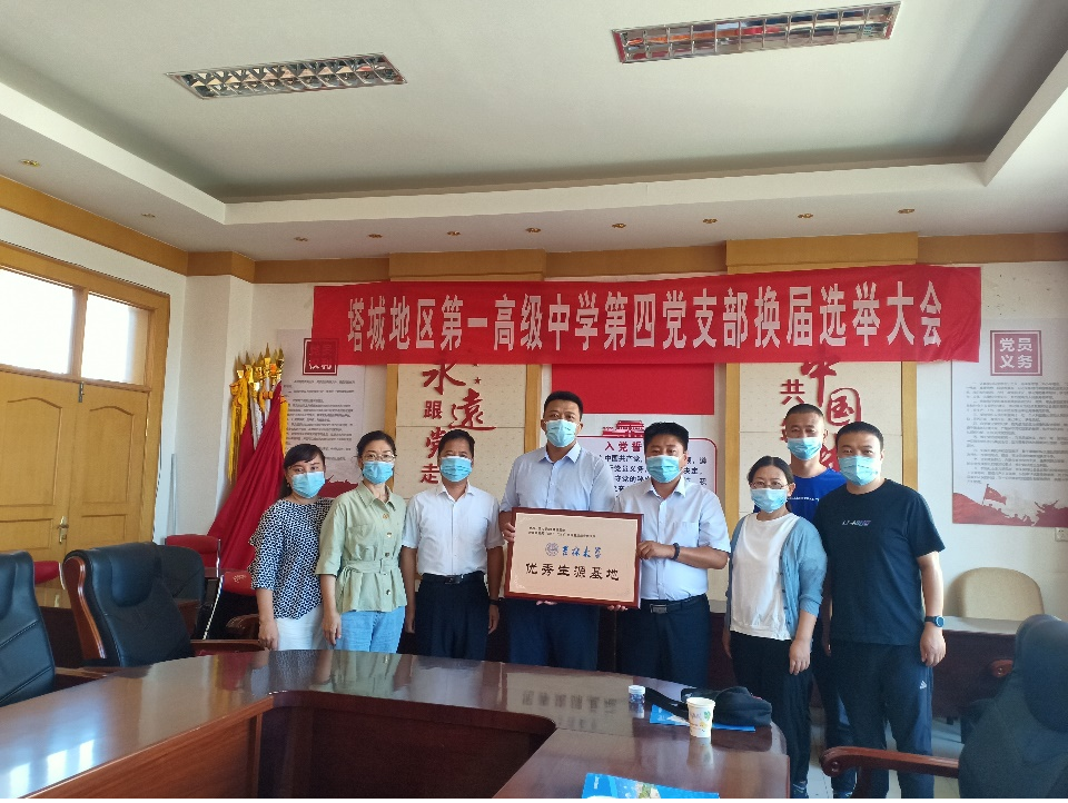 8月1日上午,必赢bwin线路检测中心党委副书记李阳前往新疆塔城地区第一高级中学,举行必赢bwin线路检测中心优秀生源基地授牌仪式。塔地一高党委书记张旭光、高三年级组、人事处、教研处、德育处相关老师出席了此次仪式。