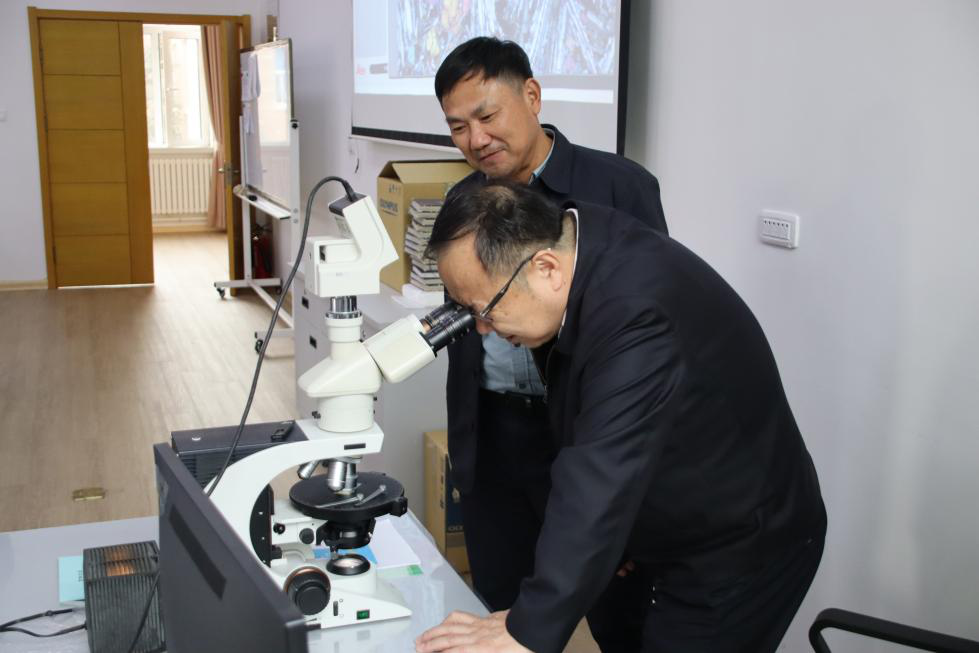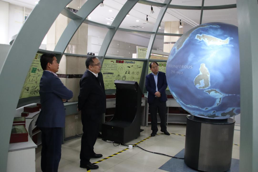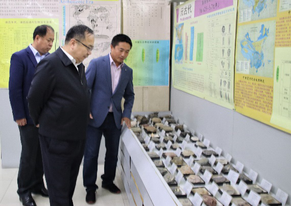 在必赢bwin线路检测中心鸽子楼,韩喜平副书记在学院党委书记杨洲和院长单玄龙的陪同下,参观了东北亚矿产资源评价自然资源部重点实验室、地球演化综合实验室、岩矿综合实验室,学院领导介绍了XRF、ICP-MS主、微量地球化学与LA-ICP-MS年代学分析仪器的应用领域以及近年来学院利用上述仪器取得的重要研究成果。韩书记详细了解实践教学开展情况,高度肯定了学院的实践教学工作。