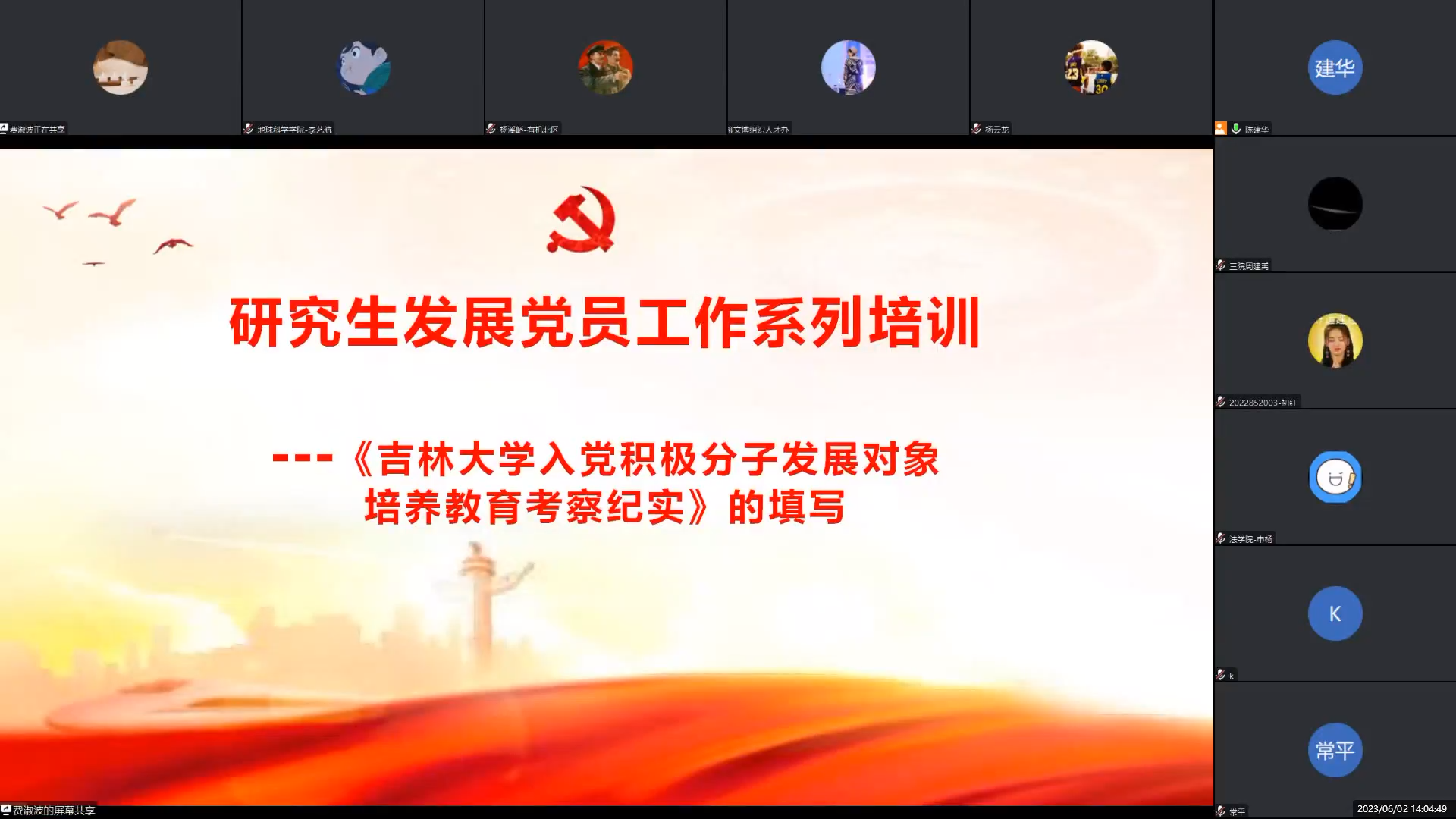 为规范研究生发展党员工作,严格发展党员工作程序,加强研究生发展党员的动态管理,进一步推动研究生党员队伍建设。6月2日下午14:00,学院组织研究生党支部委员、德育助管参加由学校举办的研究生发展党员工作系列培训。