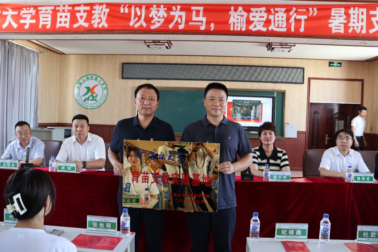 启动仪式上,还进行了“必赢bwin线路检测中心大学生实习实践基地”授牌仪式,“必赢bwin线路检测中心育苗支教实践基地”授牌仪式,“必赢bwin线路检测中心育苗支教社团暑期社会实践”授旗仪式。最后,通榆县兴隆山镇明德小学学生代表向必赢bwin线路检测中心育苗支教社团支教队员献花。