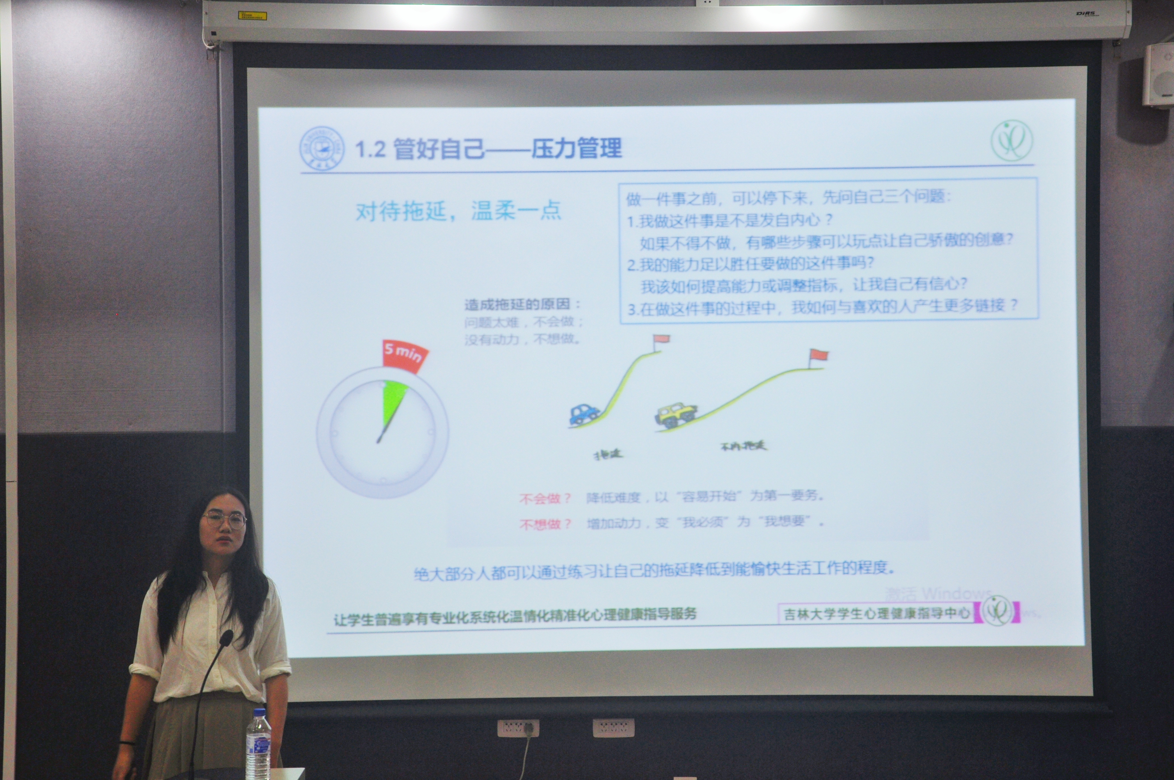 随后,张老师围绕心理健康知识的宣传普及、研究生心理健康的影响因素、增进心理健康的策略、学校的心理健康指导服务等内容,从“管理好自己”、“利用好资源”两个方面展开,强调了目标管理、压力管理和时间管理的重要性和意义,给出了如何利用知识资源、人际资源和专业资源的宝贵建议。最后,张老师呼吁同学们在遇到难以解决的心理问题时,应主动寻求帮助,借助专业的力量,必赢bwin线路检测中心学生心理健康指导中心的大门永远向同学们敞开。
