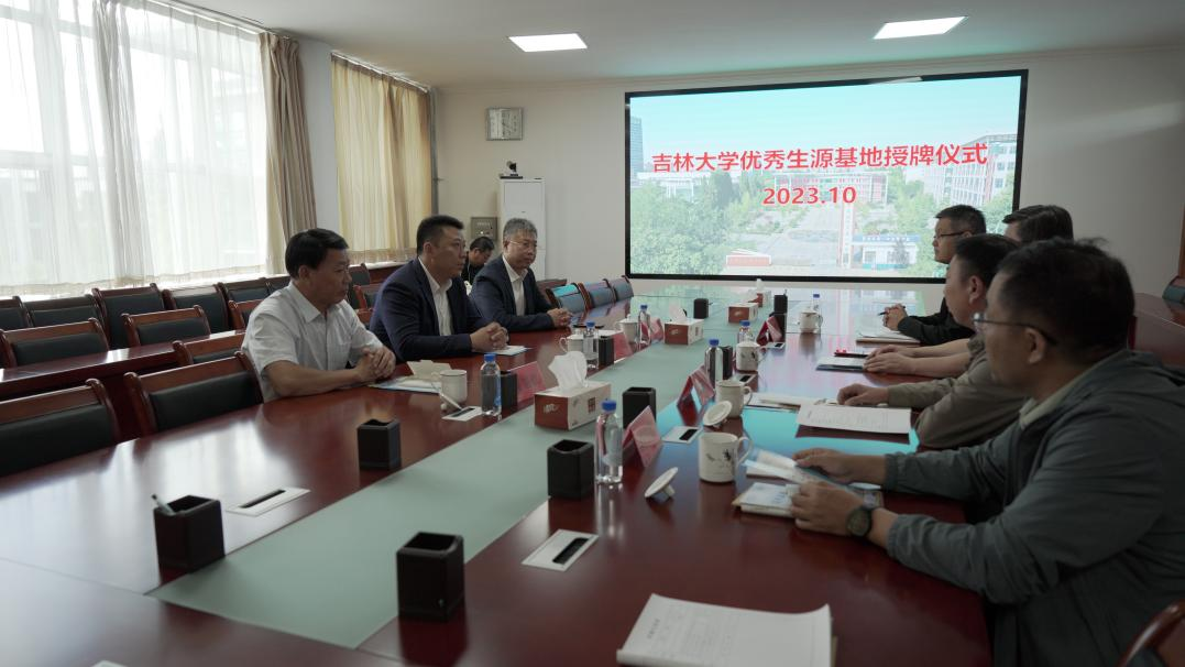2023年10月20日上午,必赢bwin线路检测中心党委副书记李阳、行政副院长苗广文以及青岛校友会常务副会长崔锡钦受邀来到山东省胶州市第一中学开展优秀生源基地授牌仪式。第一中学党委书记兼校长薛斌、副校长王抟九、副校长郭亮等学校领导出席了相关活动。