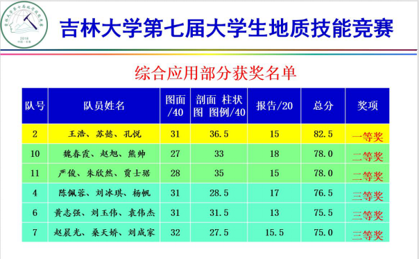 今年的第七届必赢bwin线路检测中心地质技能竞赛地质技能综合应用环节2018年6月3日进行,本环节竞赛共有来自必赢bwin线路检测中心、长春工程学院的20支代表队60人参加,最终6个组获奖。