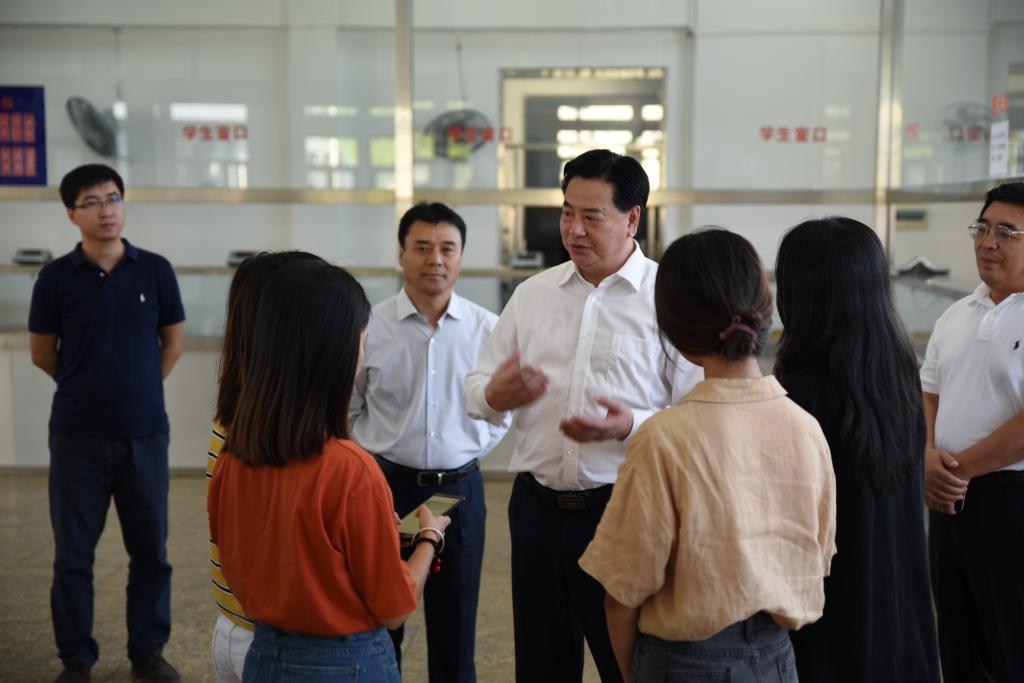 4日下午5时许,李元元校长正在食堂慰问同学们,他笑容洋溢,低头询问同学们饭菜情况。我们必赢bwin线路检测中心网信中心记者团的同学们非常有幸的采访到了李校长,校长亲切和蔼,对我们提出的问题耐心细致的解答。