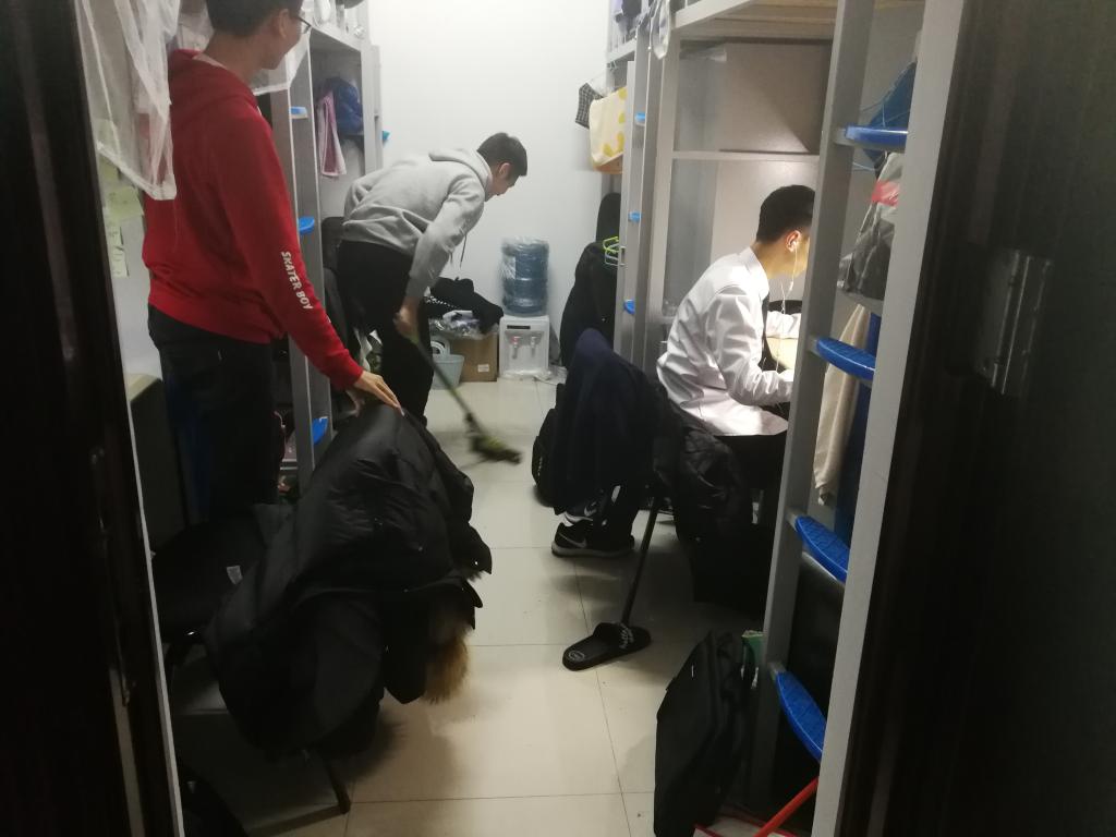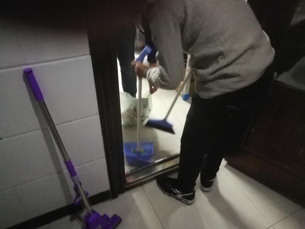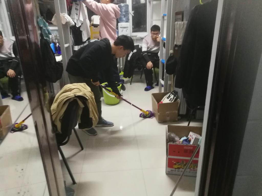 曲老师与学生会带领必赢官网18级学生在南苑二公寓和文苑六公寓展开了一场寝室卫生保卫战——大扫除。