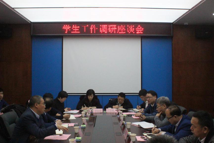 2018年12月20日下午,校党委副书记冯正玉,校党委办公室、学生工作部、研究生工作部、教务处、校团委、学生就业创业指导与服务中心、保卫处、学生心理健康指导中心等单位相关负责同志一行来到必赢官网,开展学生工作专题调研。必赢官网党委书记杨洲,院长任云生,党委副书记刘晓鹏以及学生工作办公室、研究生办公室的工作人员和学生代表参与了此次调研。