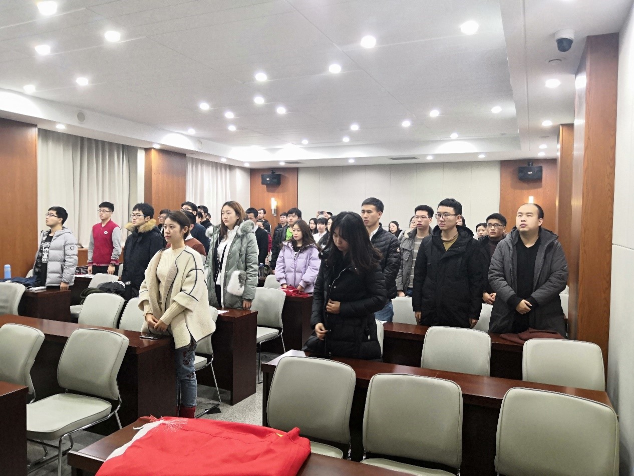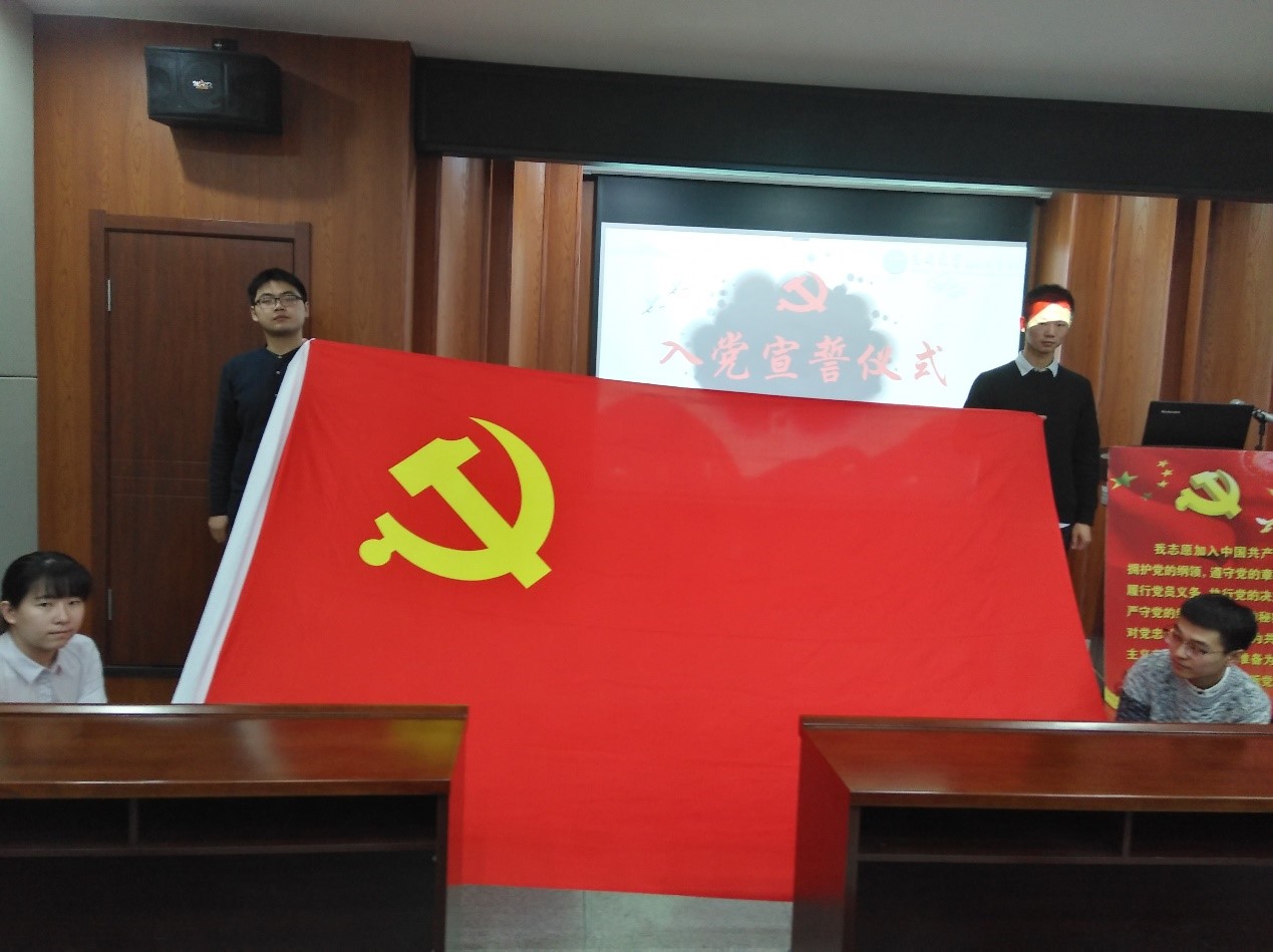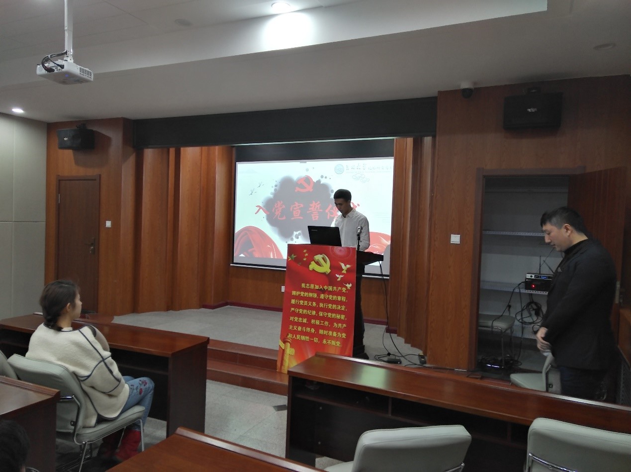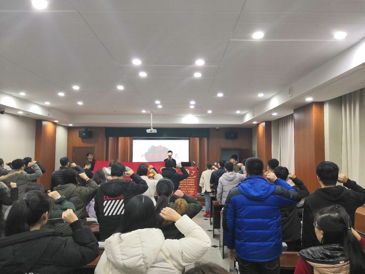 2018年12月28日上午十点,必赢bwin线路检测中心在鸽子楼报告厅举行了庄严而神圣的入党宣誓仪式。必赢bwin线路检测中心党委书记杨洲、党委办公室主任周小萌老师、辅导员李功宇老师、各年级党支部书记以及本年度新发展的研究生与本科生预备党员参加了本次活动。
