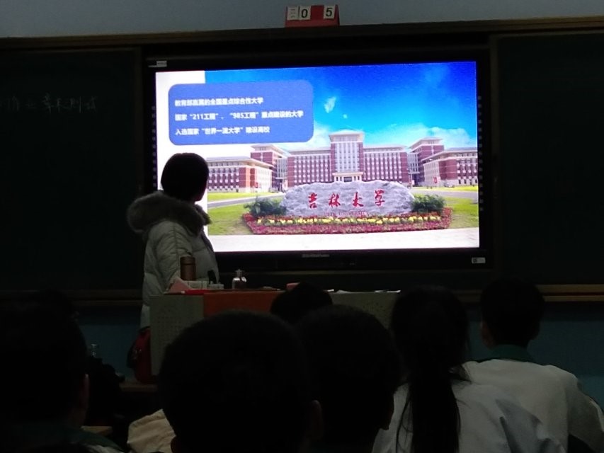 在招生宣传前期,团队不仅认真交流、熟悉吉大官方招生宣传PPT,各位队员还根据各自对大学生活的感悟进行串联、总结,制作出一版独具必赢bwin线路检测中心特色的大学生活宣传课件。在团队精心的筹备下,在与大安一中的积极沟通下,团队招生宣传活动在母校高三课堂上顺利开展。