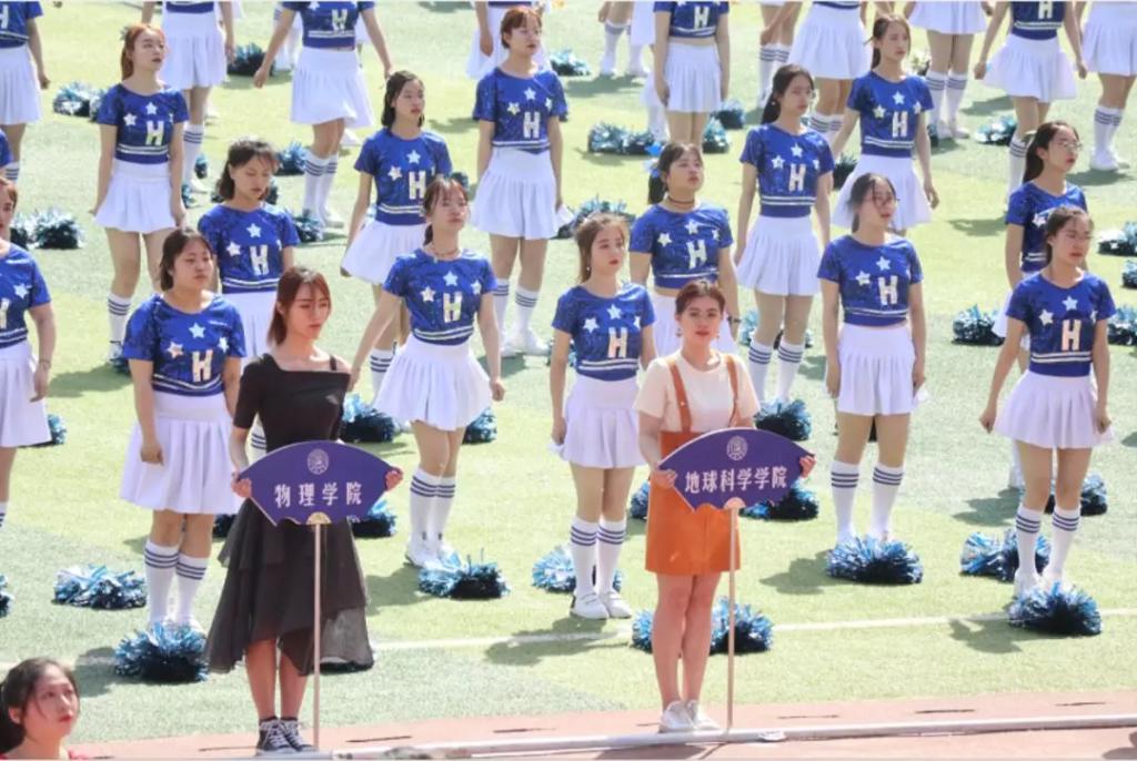 2019年5月24日,我校第58届运动会正式开幕。九点三十分左右,三路长拳的队伍离场,各学院的庞大的广播体操啦啦操表演队伍上场,她们在紧张的赛程之间,为场上的运动健儿们加油助威。