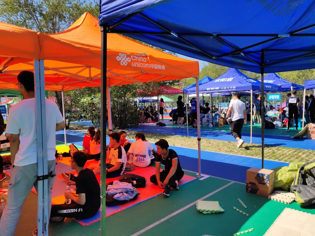 一大早,有项目的学生便来到学院在操场的搭建的棚子里,他们有的安排场地,有的整理服装,有的热身运动。原本安详静谧的篮球场一瞬间就变得热闹非凡。